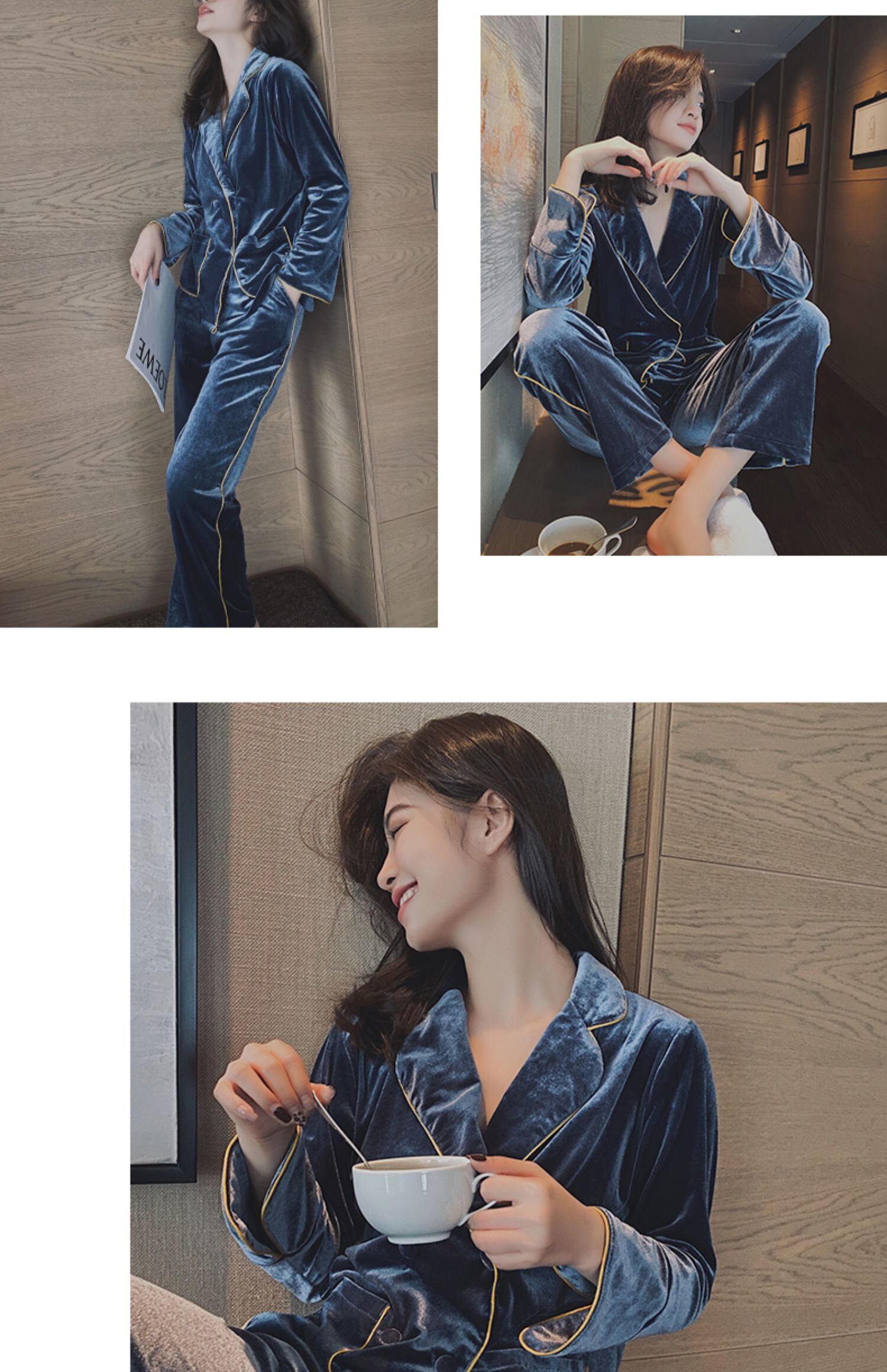 レディースオータムウィンターゴールドベルベットカジュアル ロング 秋物 冬物 mi1134215805085