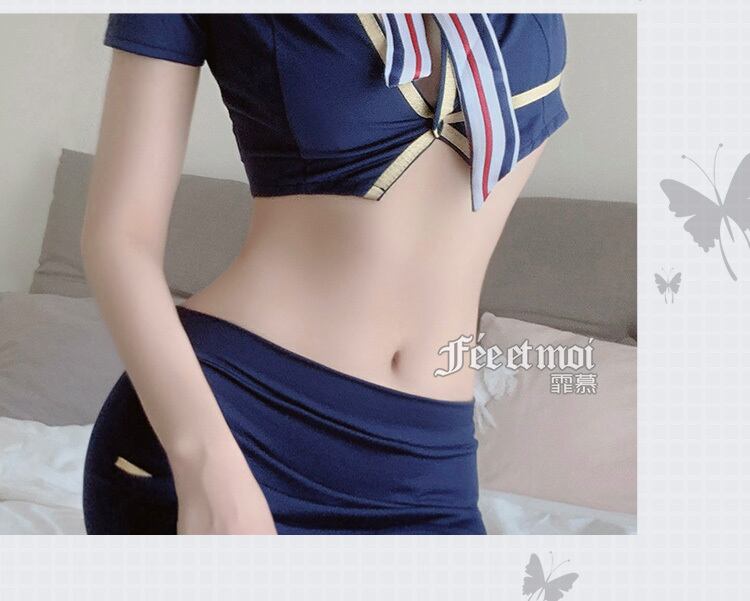 色:【スチュワーデスハット+スカーフ+トップス+スカート,[スチュワーデスハット+ハンカチ+シャツ+スカート+T