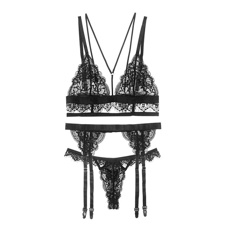 色:ストッキングを送るために設定された黒いガーターベルト