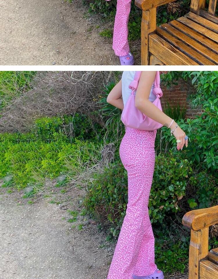 ジーンズ レディースレオパードプリント柄ハイウェストカジュアル ピンク ヨーロピアン 9/24 ナイトウェア mi1168309921905