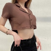 トップス レディーススタイルショートクロップドカーディガン半袖スリーブブラウン ハーフスリーブ ヨーロピアン 9/24 ナイトウェア mi1151491685875