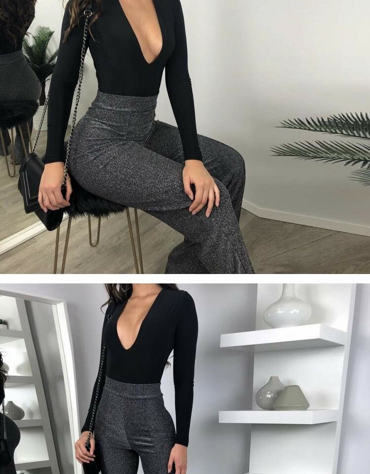 Vネックジャンプスーツ オールインワン オータムウィンター ロング 大きめサイズ 秋物 冬物 ヨーロピアン 9/24 ナイトウェア mi1175131286498