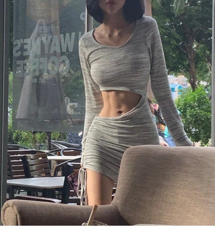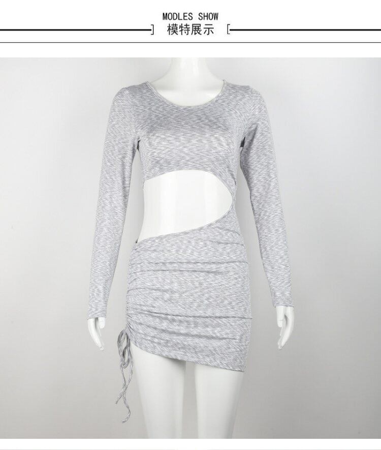 スリムスタイルオータムウィンターラウンドネックドレス ギャザー 秋物 冬物 Oネック ヨーロピアン 9/24 ナイトウェア mi119376445080