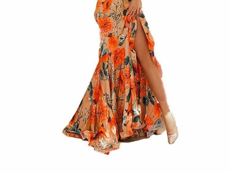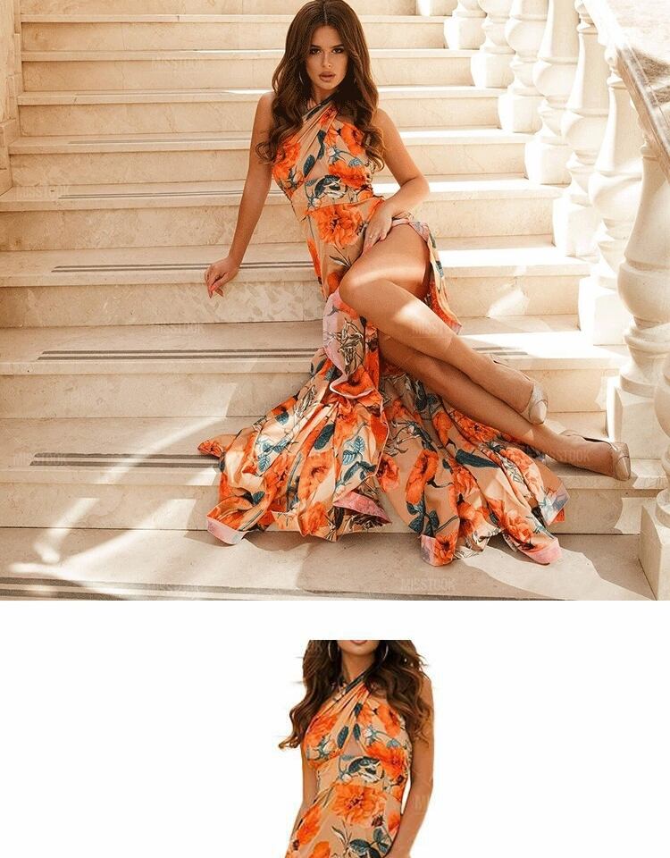 サマードレス プリント柄スリットロングスカート エレガント 夏物 ヨーロピアン 9/24 ナイトウェア mi1150722798805