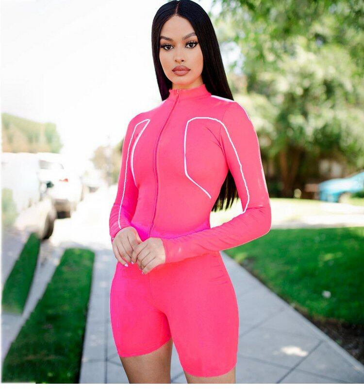 ラインジッパージャンプスーツ オールインワン レディースオータムハイウェストスキニースリム ロング 秋物 9/24 ナイトウェア mi1159817981762