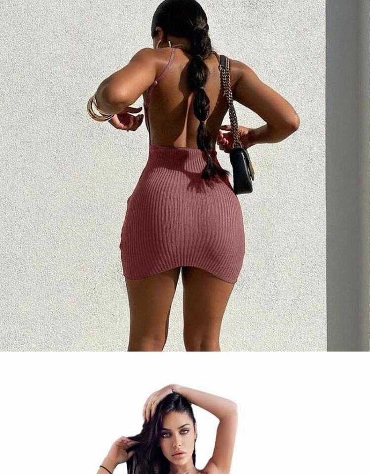 スタイルソリッド カラーストライプホルタードレス スプリング 春物 サマー 夏物 ソリッドカラー ヨーロピアン 9/24 ナイトウェア mi1152590882832