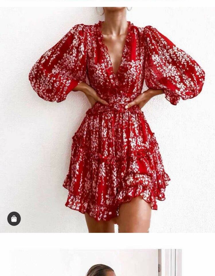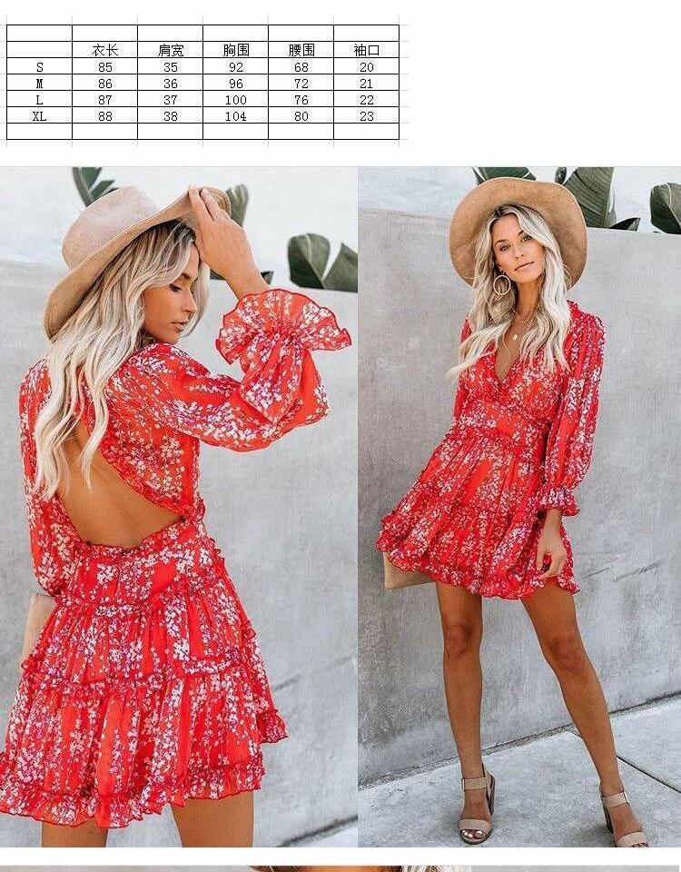 スタイルVネックホルタープリント柄シフォンドレス ロング ビーチ ヨーロピアン 9/24 ナイトウェア mi1187581683994