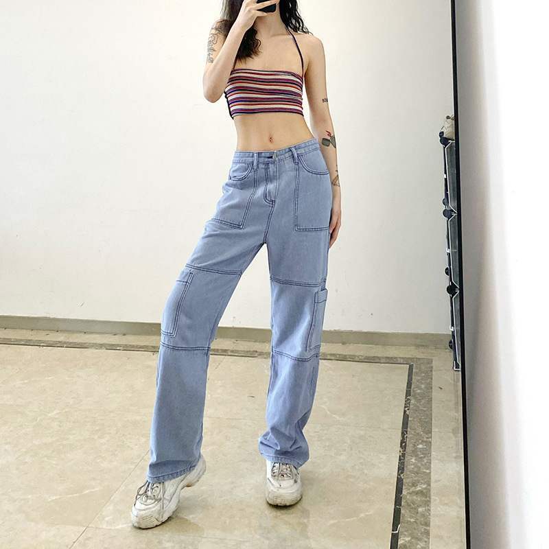 ポケットジーンズ レディースパンツ ブルーハイウェストウェスト ヨーロピアン 9/24 ナイトウェア mi112902008131