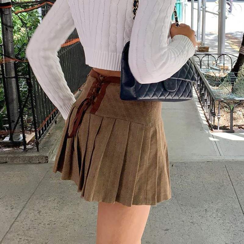 ショートスタイルカーキプリーツハイウェスト スカート ヨーロピアン 9/24 ナイトウェア mi1162077956895