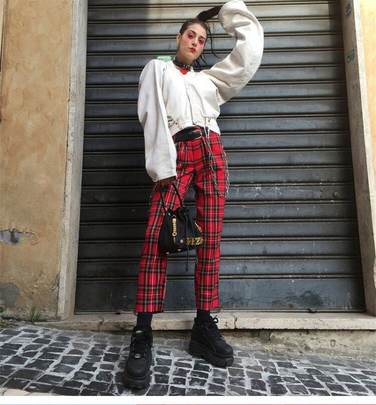 スタンダードスプリングオータムルーズウェスト格子柄クロップドパンツ レトロ 春物 秋物 ヨーロピアン 9/24 ナイトウェア mi1132399888564