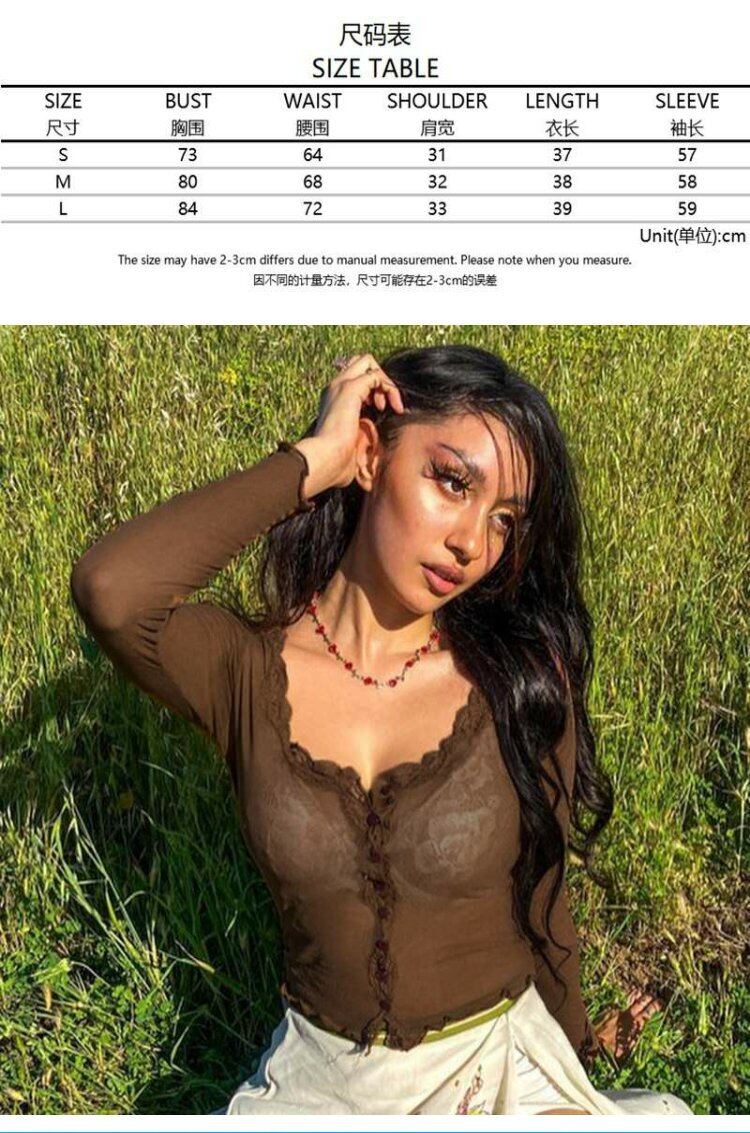 カーディガンブレストレースTシャツ シャツ ショートトップス ロング ヨーロピアン ステッチ 9/24 ナイトウェア mi1184740512625