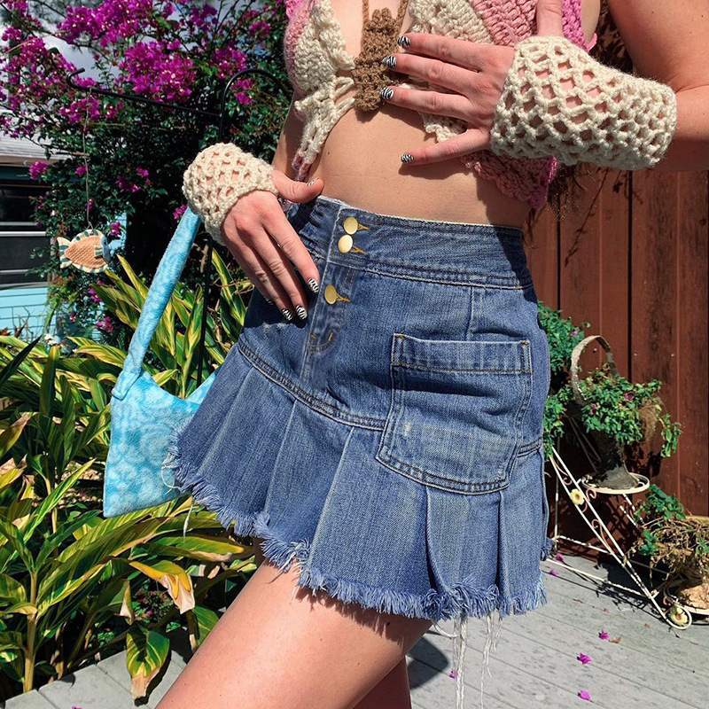 ショートスタイルハイウェストウェストプリーツ スカート ヨーロピアン ステッチ 9/24 ナイトウェア mi1123390443426