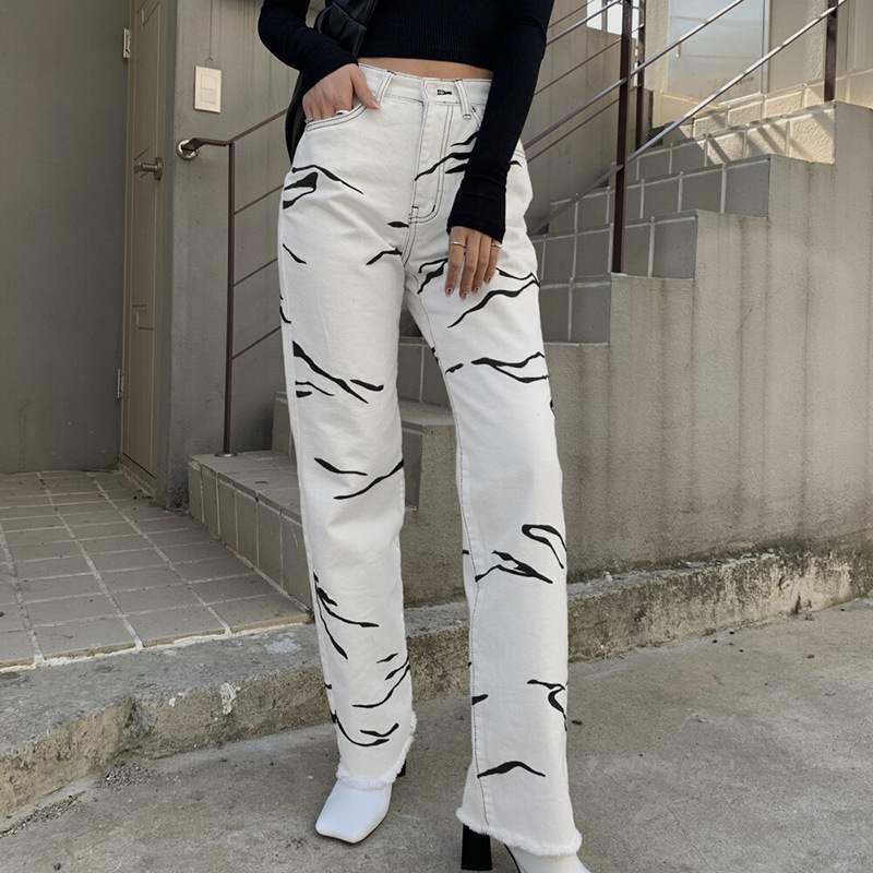 プリントジーンズ レディーススタイルラインパンツ ハイウェストウェスト ヨーロピアン 9/24 ナイトウェア mi1130653121149