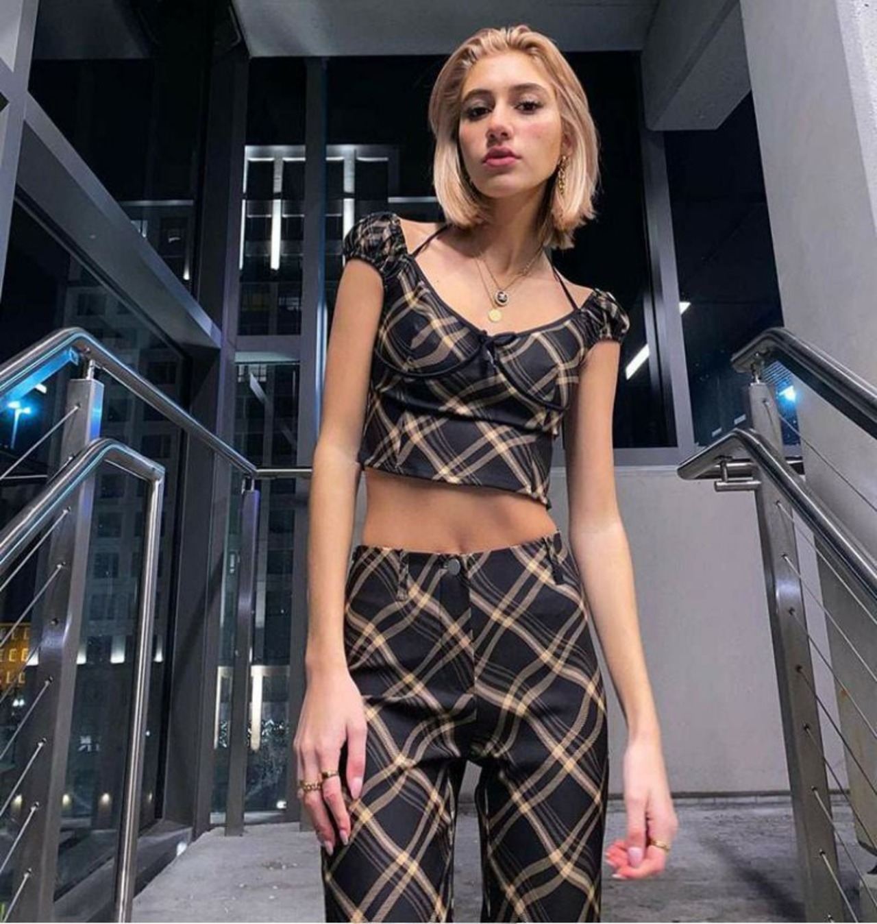 薄手カジュアルスタイルウェスト格子柄パンツ ヨーロピアン 9/24 ナイトウェア mi1163583642046