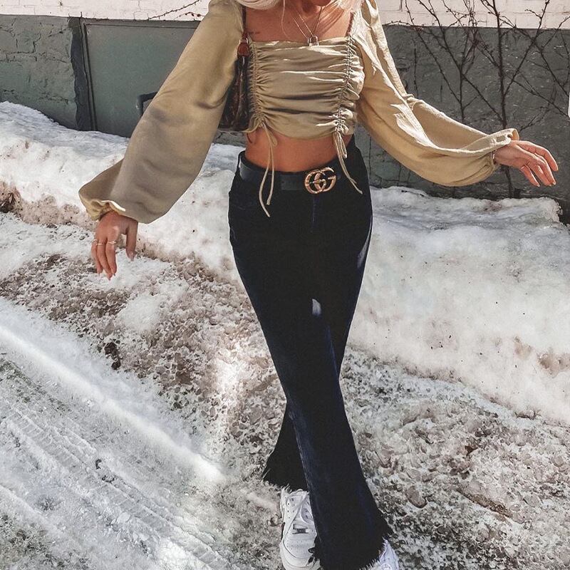 ソリッド カラーショートギャザー長袖スリーブTシャツ レディース ロング ソリッドカラー ヨーロピアン 9/24 ナイトウェア mi1127737745619