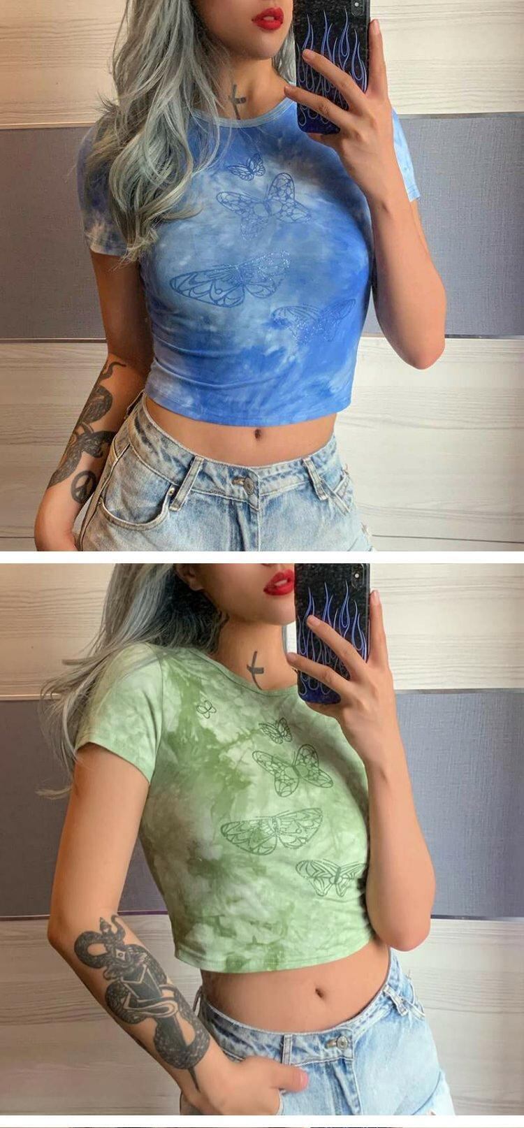 スタイルTシャツ レディースショートクロップドトップス プリント ヨーロピアン 9/24 ナイトウェア mi115412052977