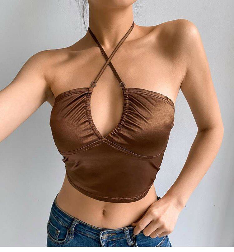 サマースタイルショートバックレスブラウンVネックホルタースリム 夏物 ヨーロピアン 9/24 ナイトウェア mi1167032579375