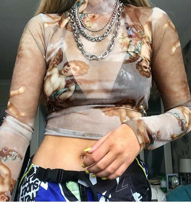 スタイルトップス プリント柄Tシャツ シャツ メッシュショート ヨーロピアン 9/24 ナイトウェア mi1165472233433