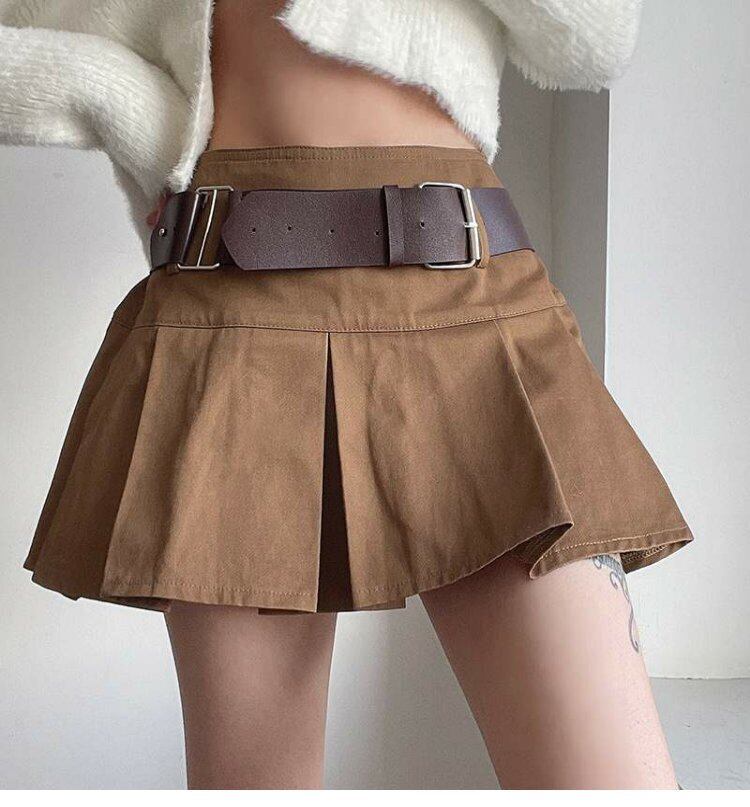 ベルト プリーツスカート スプリングスタイルカーキハイウェストウェストショート 春物 ハーネス ヨーロピアン 9/24 ナイトウェア mi1148477778330