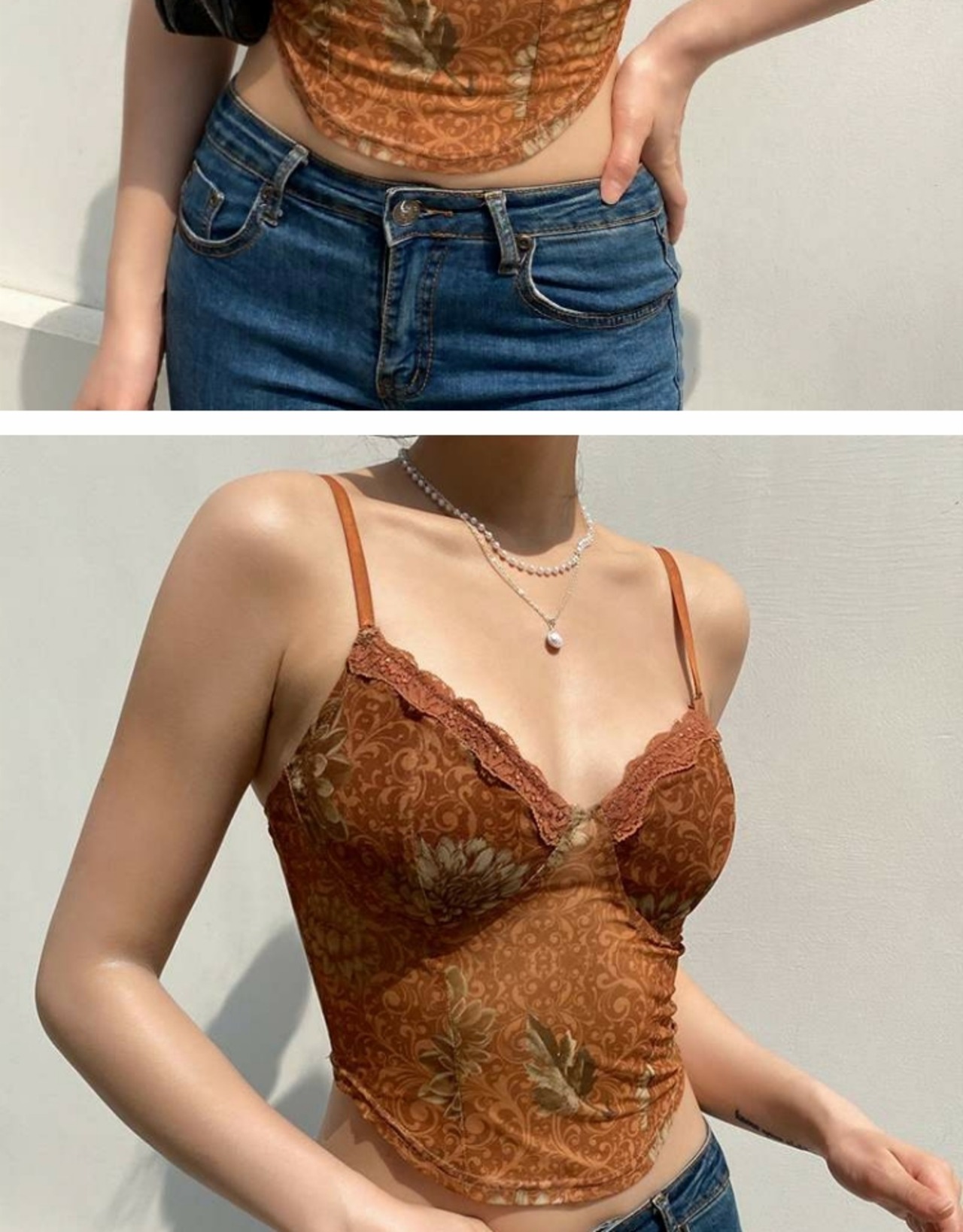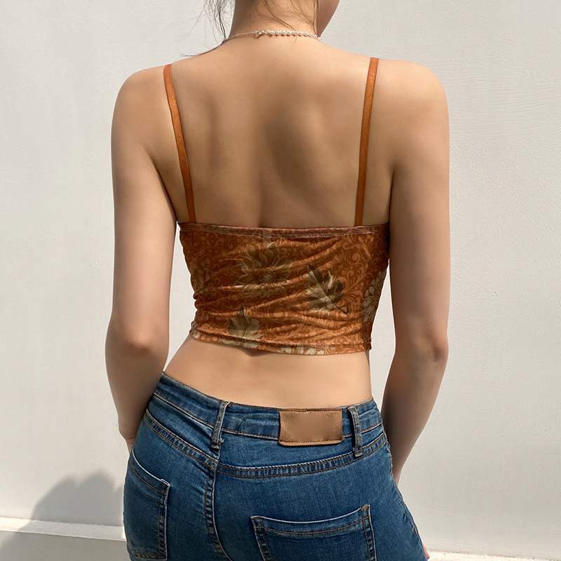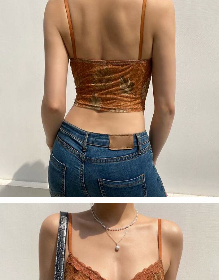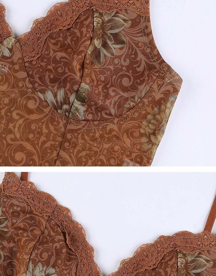 スタイルブラウンサマープリント柄ホルターVネックバック 夏物 ヨーロピアン 9/24 ナイトウェア mi1158851466445