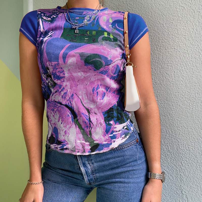 スタイルサマーTシャツ プリントスリムラウンドネック 夏物 Oネック ヨーロピアン 9/24 ナイトウェア mi1142534629048
