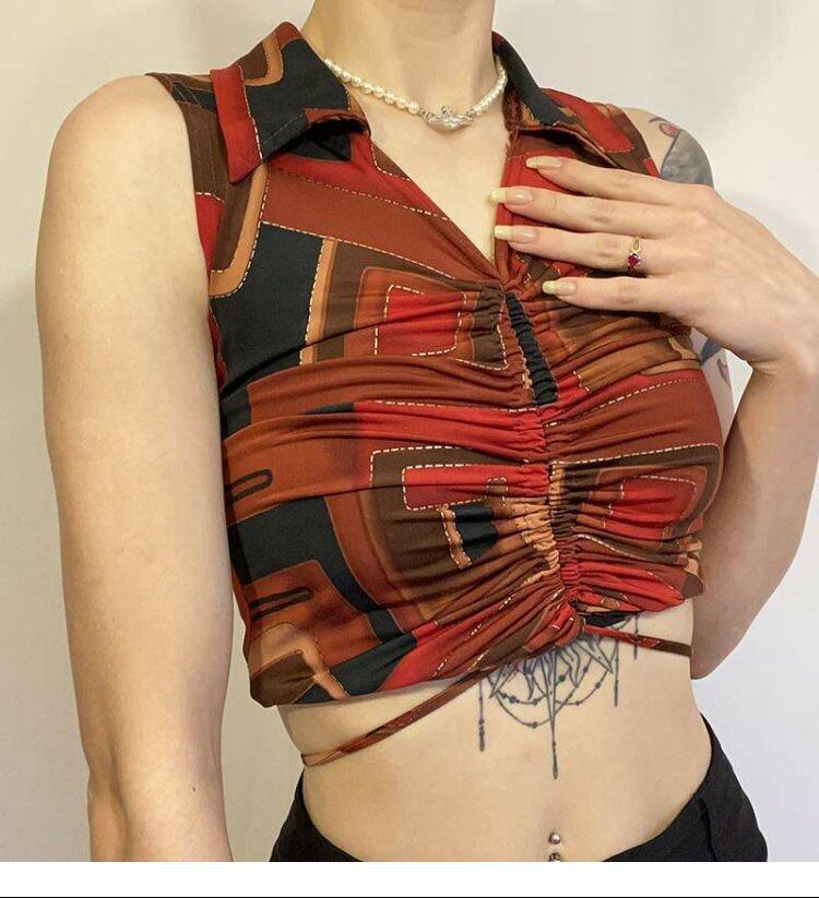 スタイルレディースプリーツスリムプリントVネックショート ヨーロピアン 9/24 ナイトウェア mi1199612450342