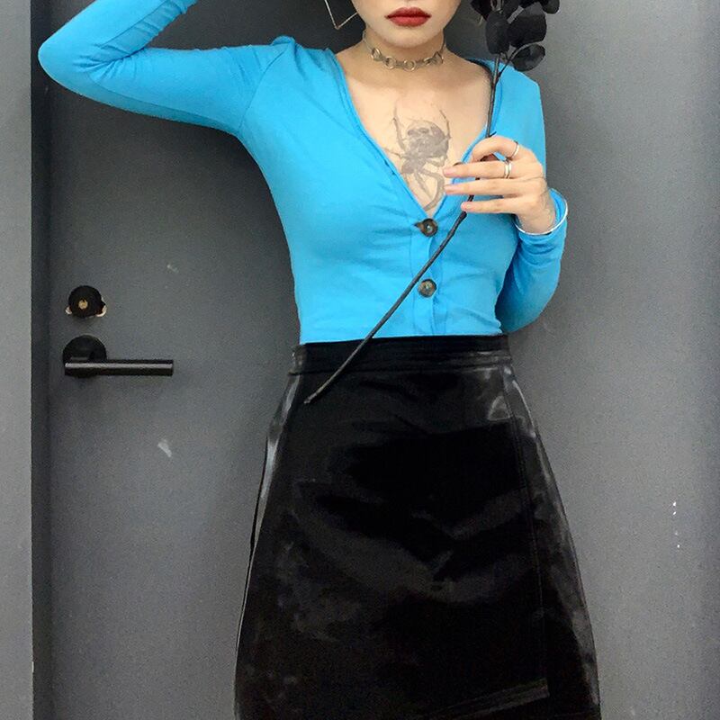 スリムオータムソリッド カラーVネックカーディガンTシャツ レディース ロング 秋物 ソリッドカラー ヨーロピアン 9/24 ナイトウェア mi1176457740892