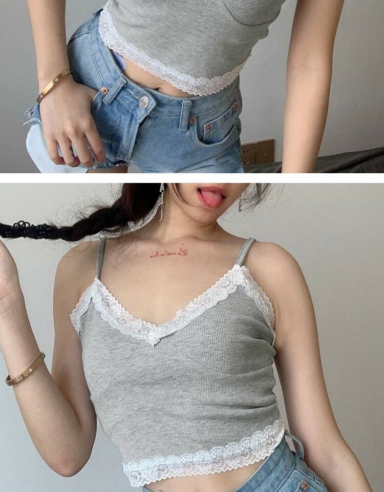 レーススタイルVネックノースリーブ ヨーロピアン ステッチ 9/24 ナイトウェア mi1166645433559