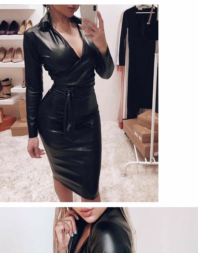 レザーVネックスリムスタイルドレス スカート ヨーロピアン 9/24 ナイトウェア mi1192871477917