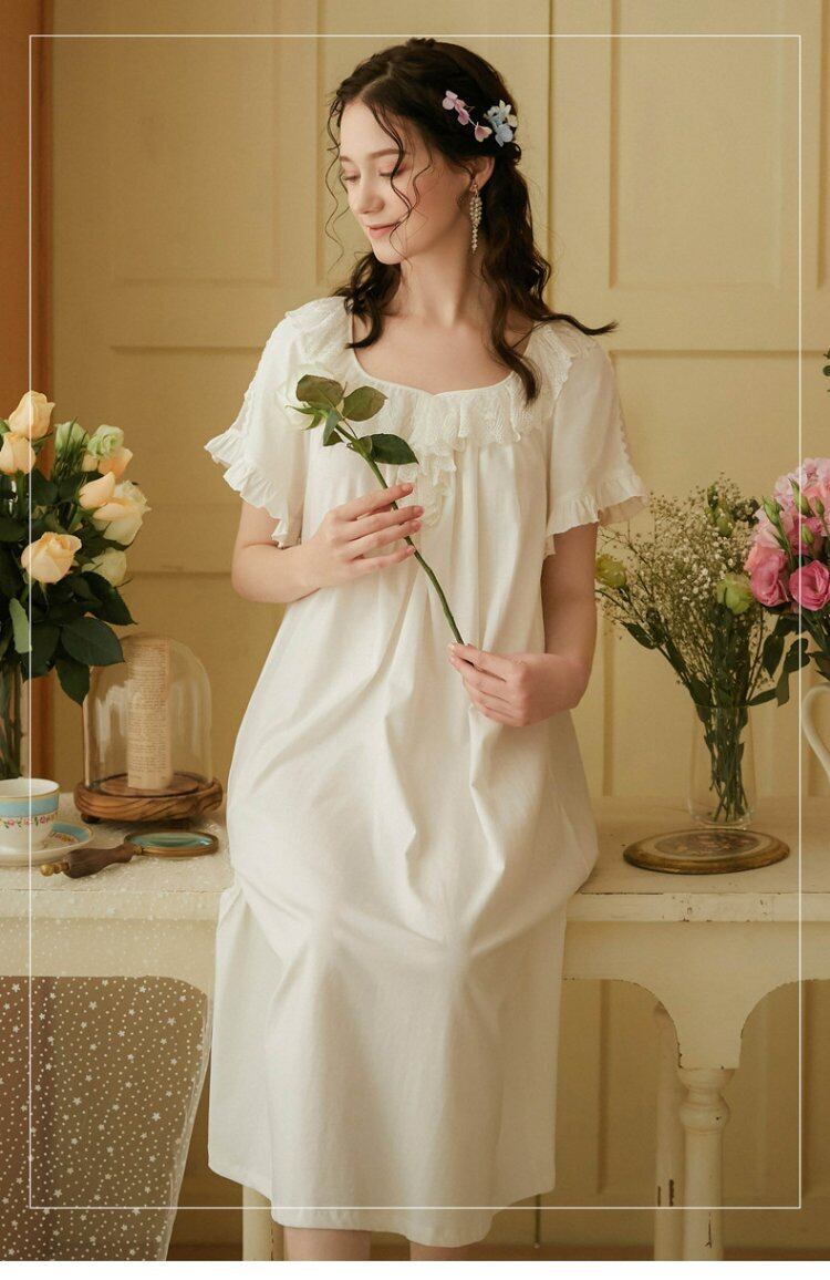 半袖スリーブサマースタイル ショート コットン レース ハーフスリーブ 夏物 9/24 ナイトウェア mi1183107326697