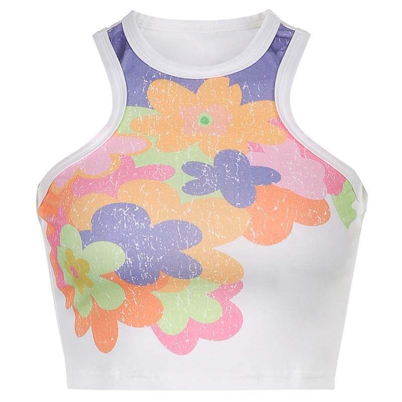 レディースFlowerデザイン プリントマルチカラーノースリーブショート フラワーデザイン 9/24 ナイトウェア mi1172984832587