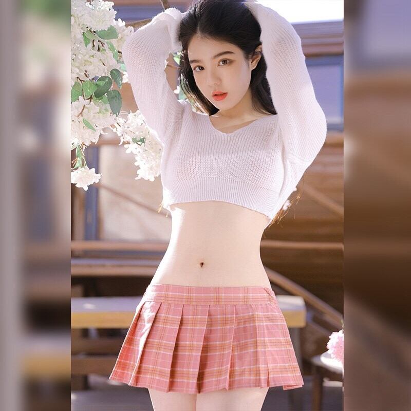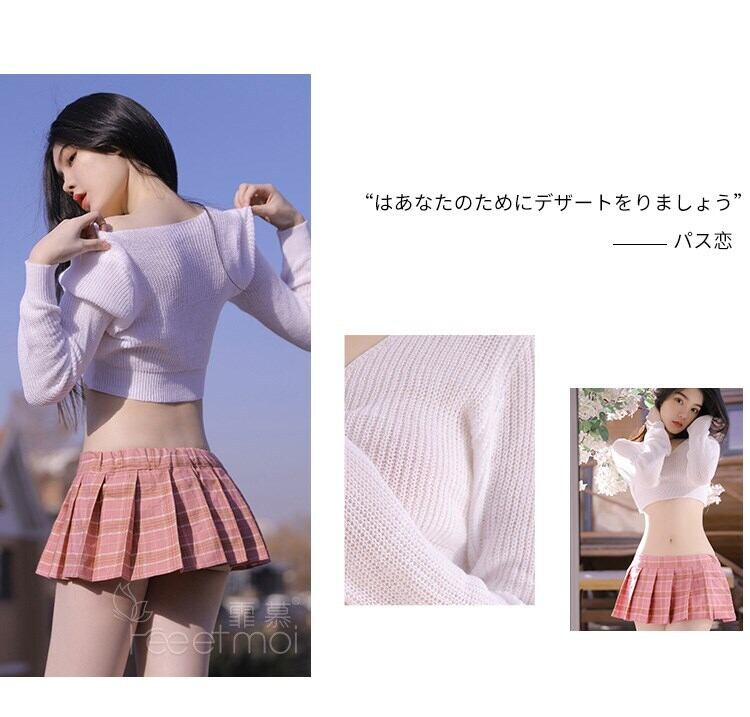 色:ブラック+ブルーグリッド【ウールブラウス+スカート+Tパンツ】,グレー+グレーグリッド[ウールブラウス+スカート+Tパンツ],ホワイト+ピンクグリッド【ウールショートトップ+スカート+Tパンツ】,ウールトップス+ショートスカート+Tパンツ】+ロングストッキング
