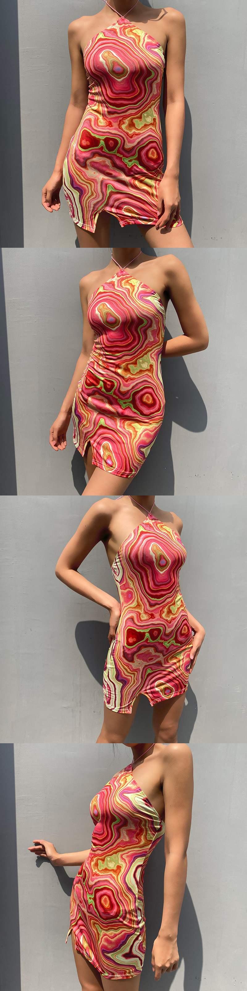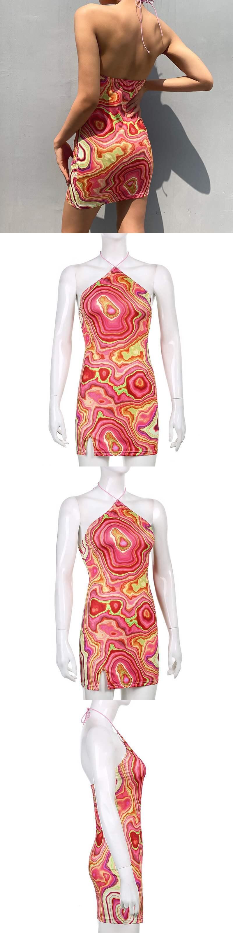 ボヘミアンスカート ドレス スタイルプリント柄ホルターウェスト ヨーロピアン 9/24 ナイトウェア mi117077374655
