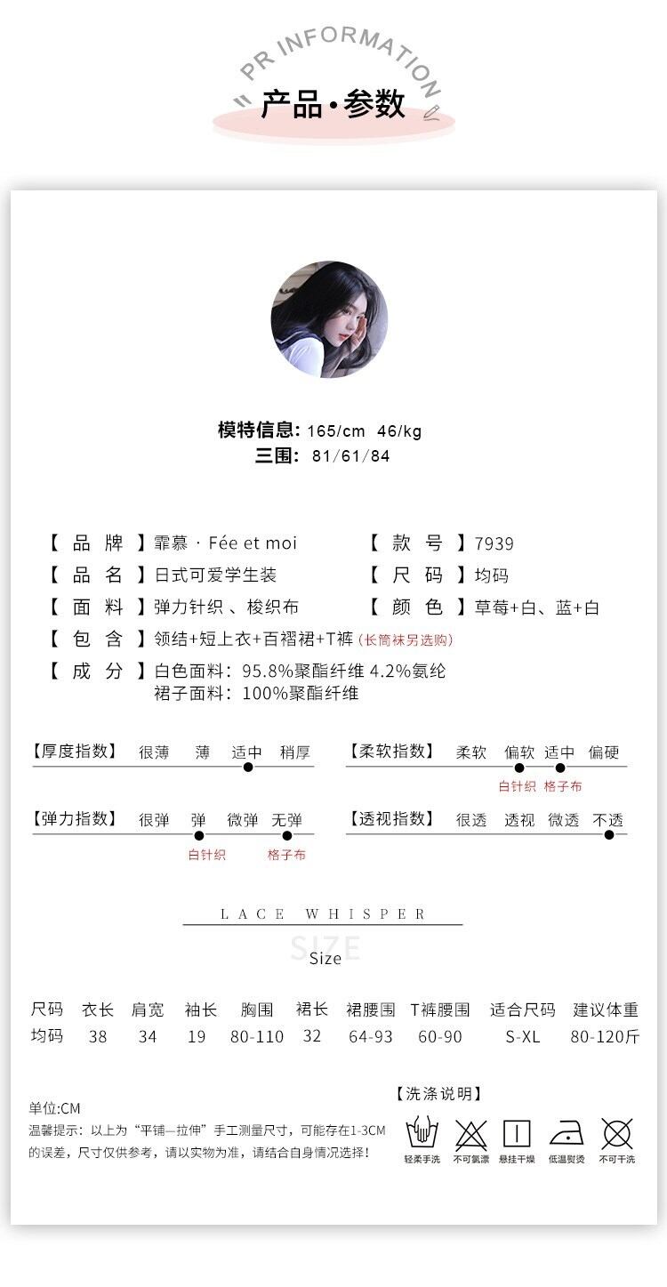 色:青と白[蝶ネクタイ+ショートトップ+プリーツスカート+Tパンツ,ストロベリーホワイト[蝶ネクタイ+ショートトップ+プリーツスカート+Tパンツ,結び目+ショートトップ+プリーツスカート+Tパンツ]+ストッキング