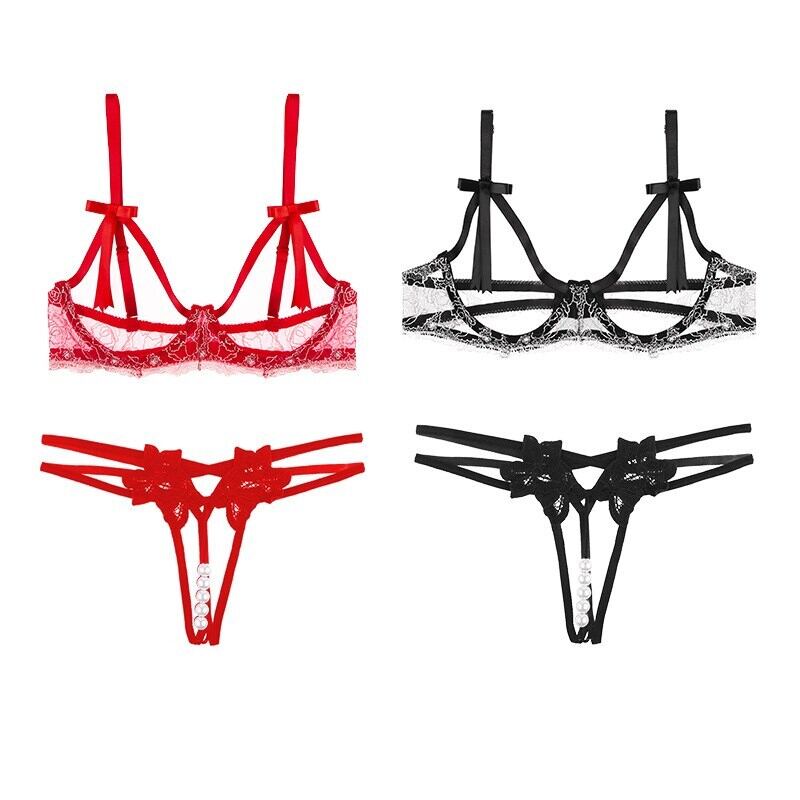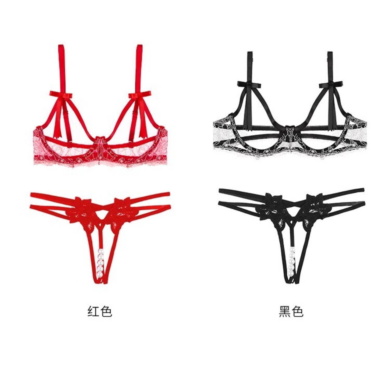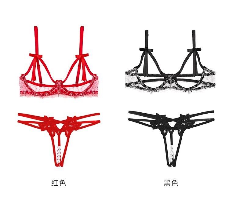 色:黒[刺繍入り中空ブラ+股内側に水溶性の花,赤[刺繍入り中空ブラ+股間に水溶性の花