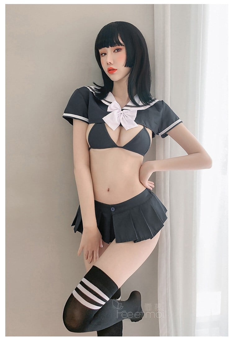 色:【ショートトップ+プリーツスカート+ストラップブラ+ストラップ,レースアップブラ+レースアップパンティー]+ストッキング