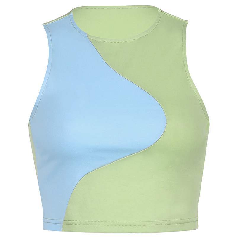 ノースリーブスタイルカラーショートストレッチラウンドネックトップス エラスティック 伸縮 Oネック ヨーロピアン 9/24 ナイトウェア mi1129891485288