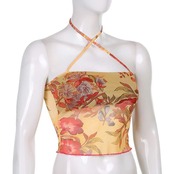 スタイルスタンダードブラウス メッシュプリントショートサイドトップス レトロ レース レースアップ 9/24 ナイトウェア mi115573140526