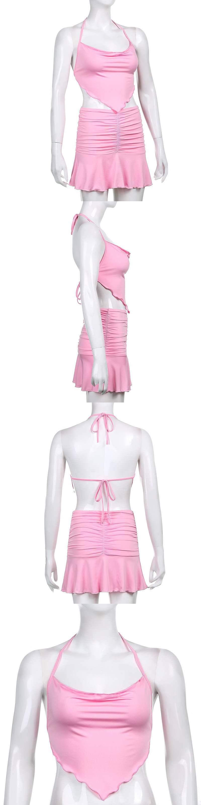 プリーツスタイルホルターVネック レース レースアップ ヨーロピアン 9/24 ナイトウェア mi1190934131703