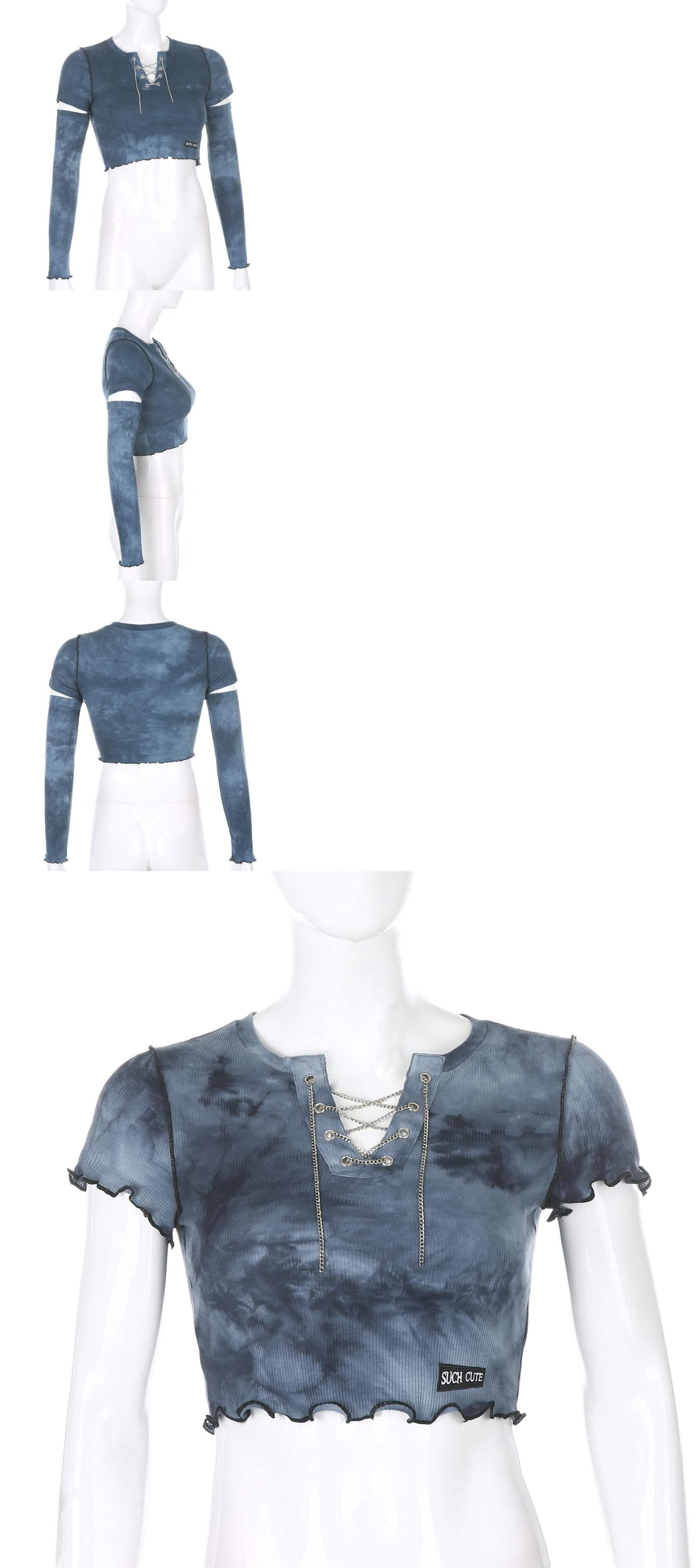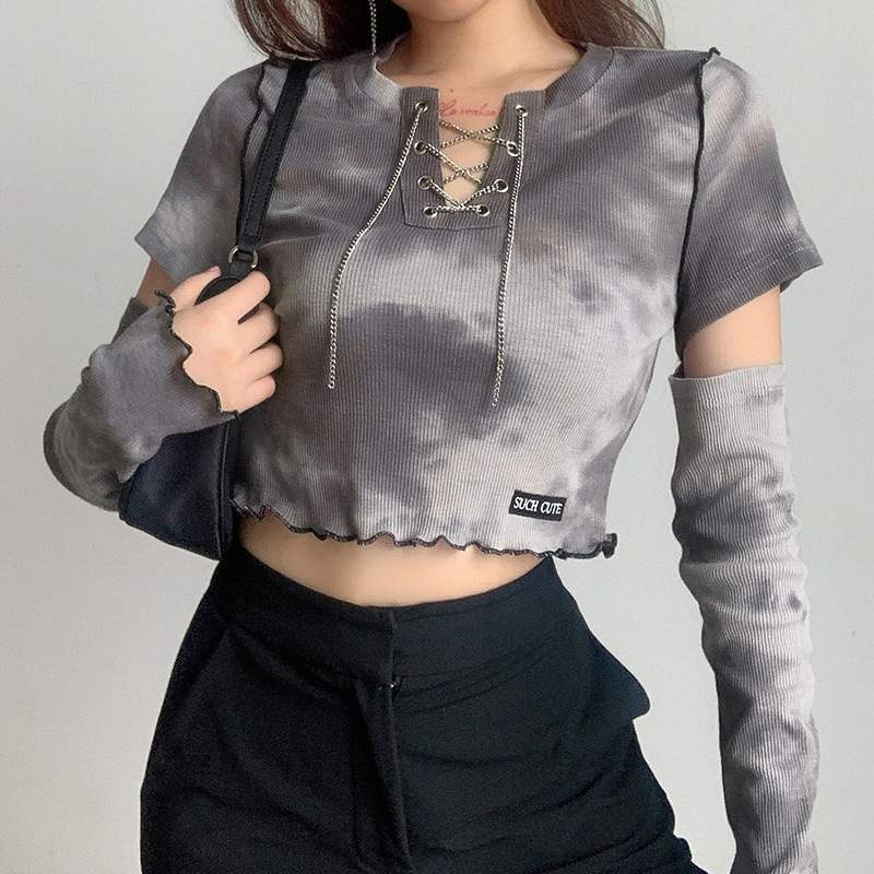 チェーン 刺繍Tシャツ オータムショートクロップトップ トップス ロング 秋物 9/24 ナイトウェア mi1166033466885