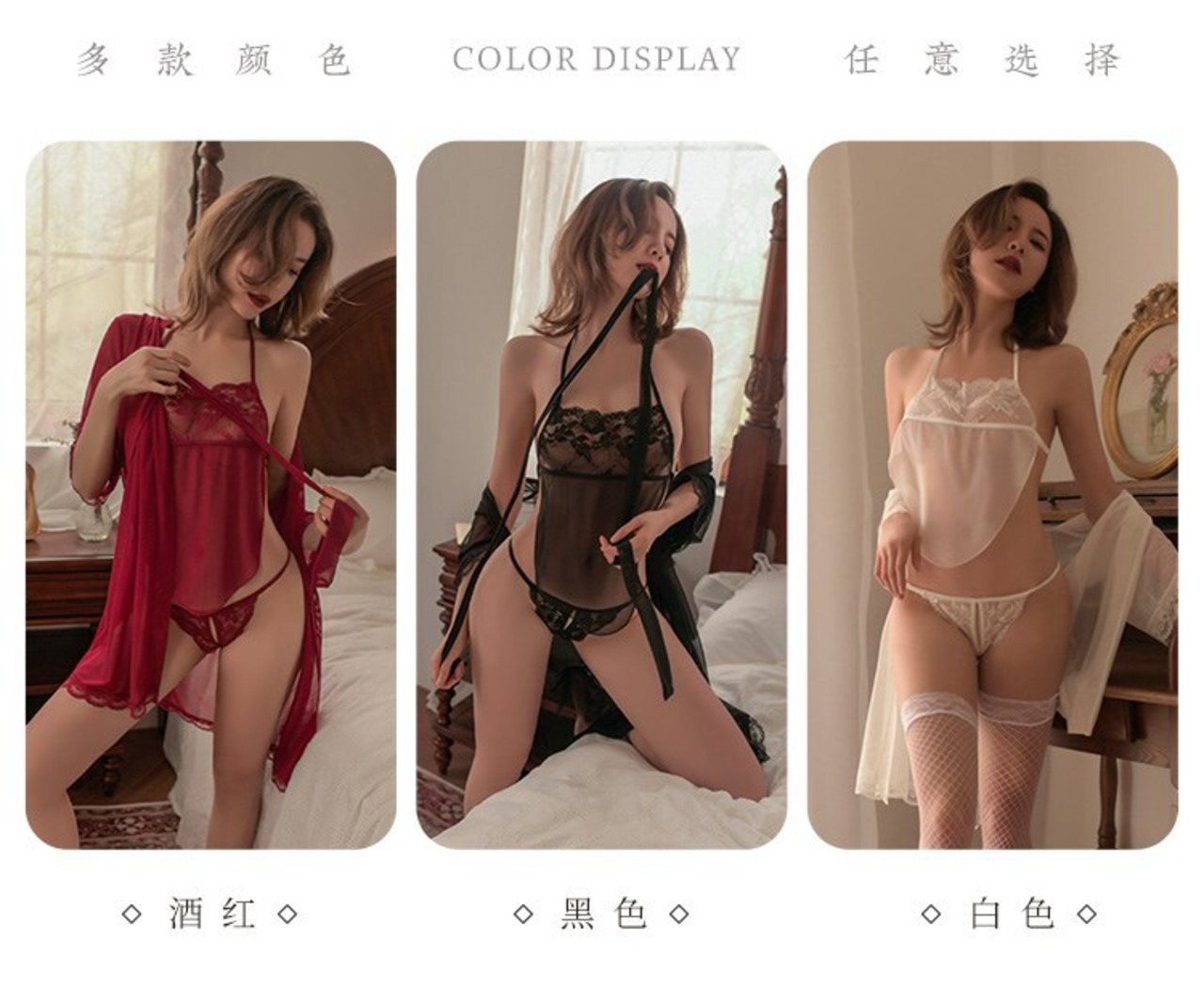 色:ブルゴーニュ[ナイトガウン+ベルト+お腹+Tパンツ],黒[ナイトガウン+ベルト+お腹ポケット+Tパンツ],ホワイト【ナイトガウン+ベルト+お腹ポケット+Tパンツ】
