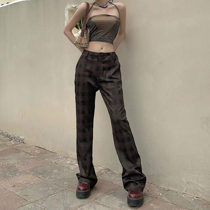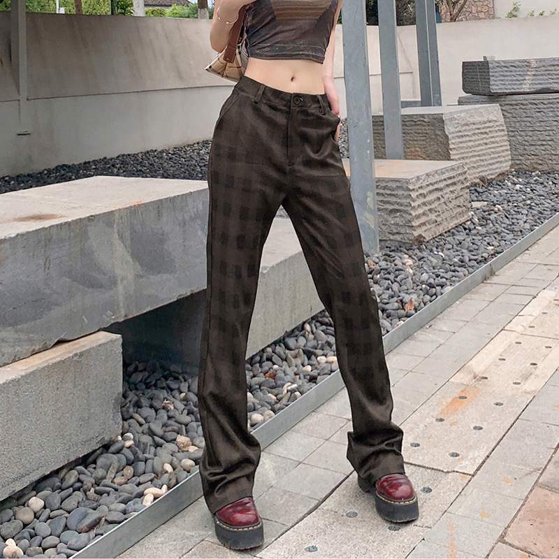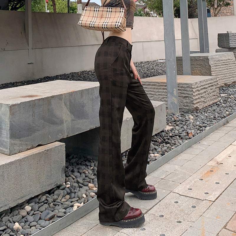スタンダードカジュアルパンツ 格子柄スタイルハイウェストロング レトロ ヨーロピアン 9/24 ナイトウェア mi1119523045172