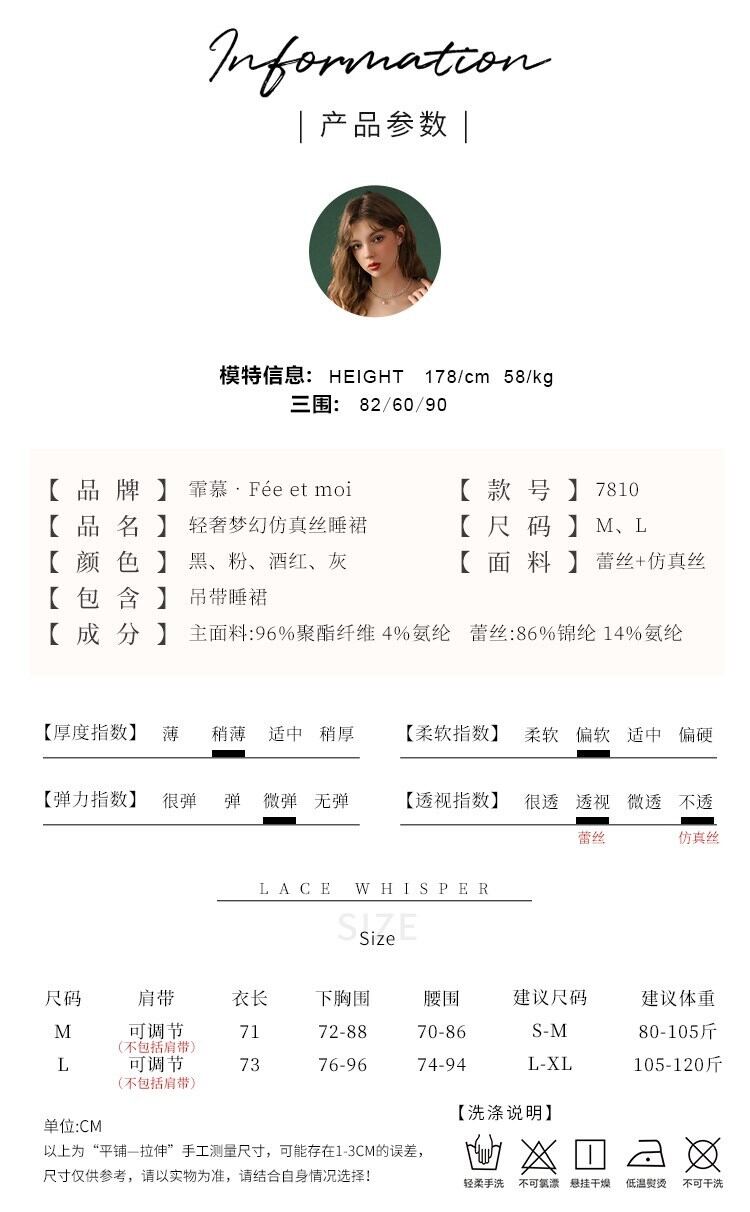 色:黒[スリングネグリジェ],グレー[スリングネグリジェ],ピンク[スリングナイトドレス],ブルゴーニュ[スリングナイトドレス]