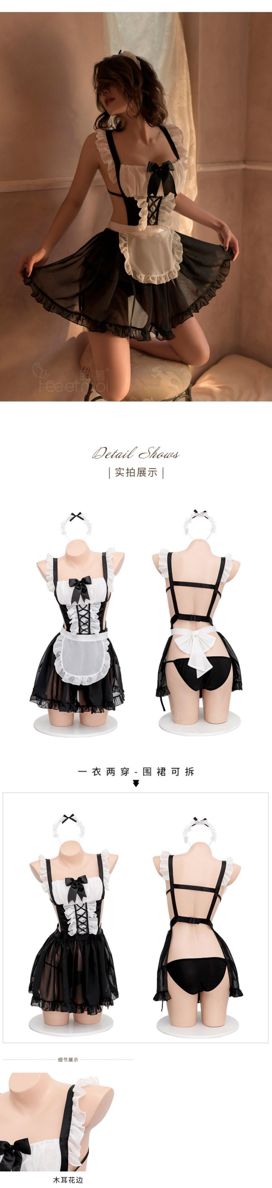 色:黒と白[ヘアバンド+ドレス+エプロン+ストラップ