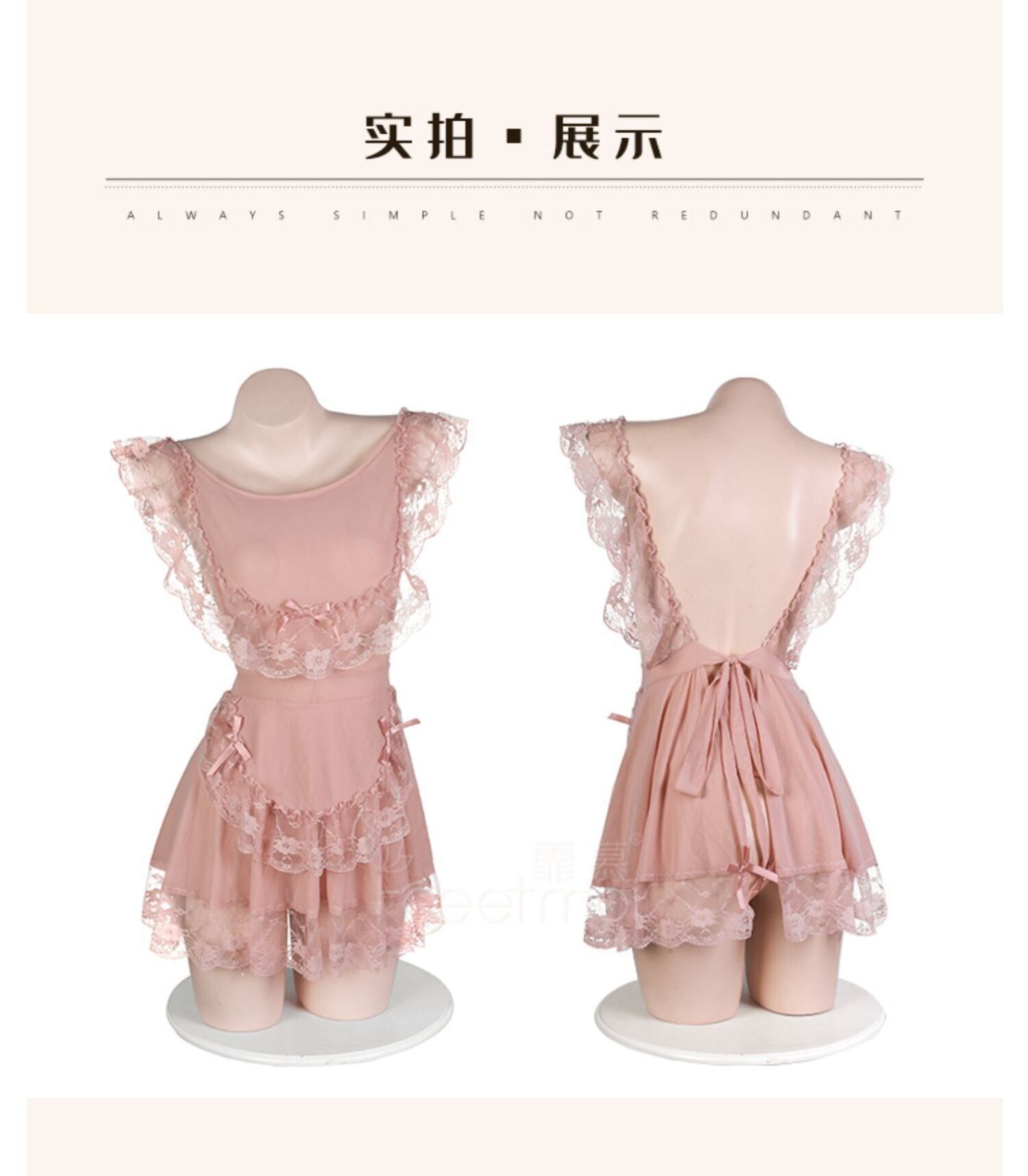 色:7809ヌードパウダー【エプロン風バックレススカート+Tパンツ】