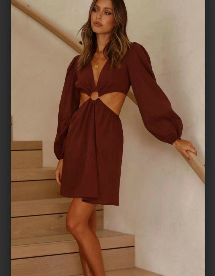Vネックドレス スプリングサマー ロング 春物 夏物 ヨーロピアン 9/24 ナイトウェア mi1186667150002
