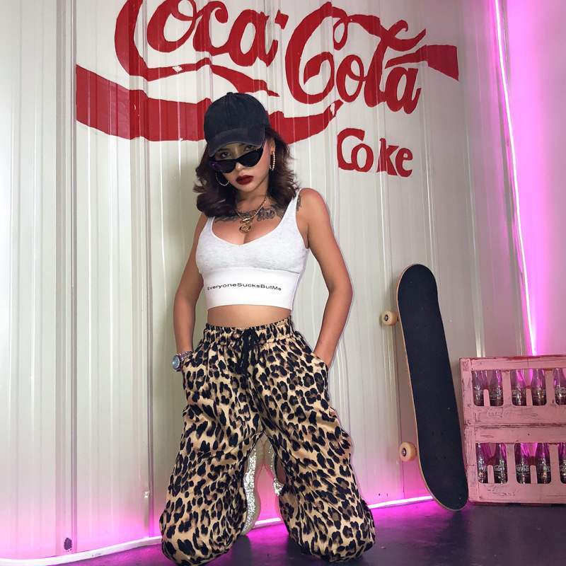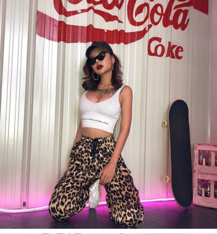 スプリングサマーレオパードプリント柄ハイウェストウェストパンツ 春物 夏物 9/24 ナイトウェア mi1117188649304