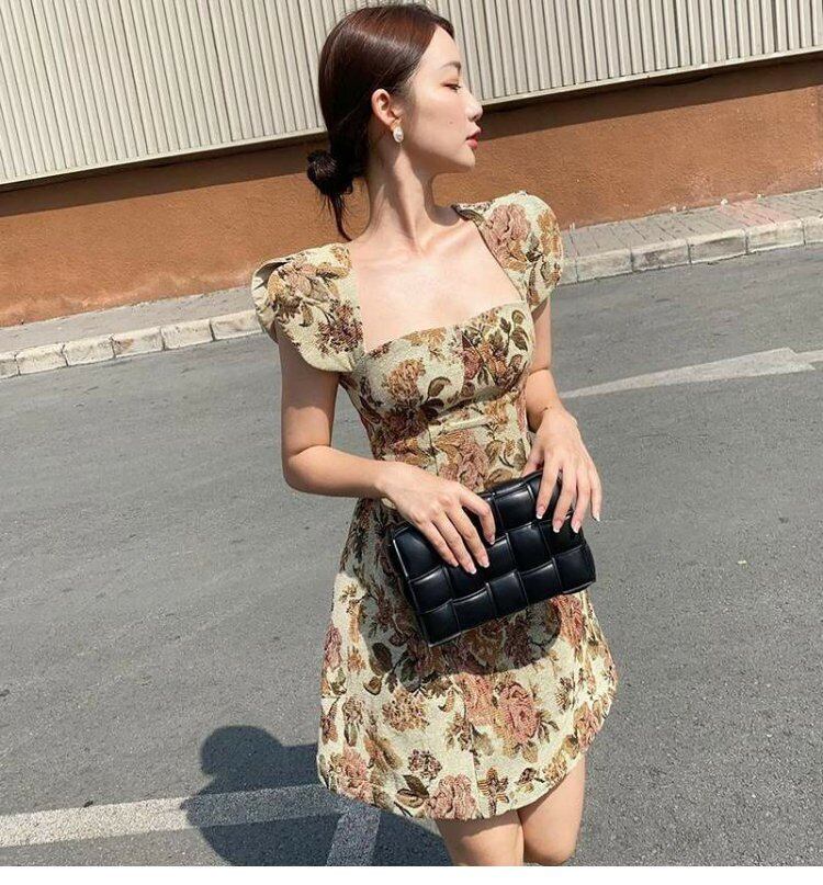 スタイルスカート スタンダードプリント柄ドレス ウェスト薄手 レトロ スクウェア ヨーロピアン 9/24 ナイトウェア mi1146431041976