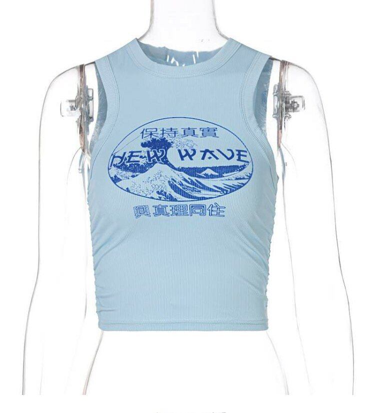 プリントサマーラウンドネックノースリーブスリムクロス 夏物 Oネック ヨーロピアン 9/24 ナイトウェア mi1129847649305