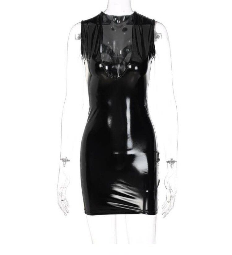 オータムレザーVネックノースリーブドレス エラスティック 伸縮 秋物 ヨーロピアン 9/24 ナイトウェア mi1179570657611